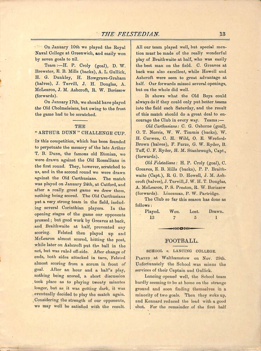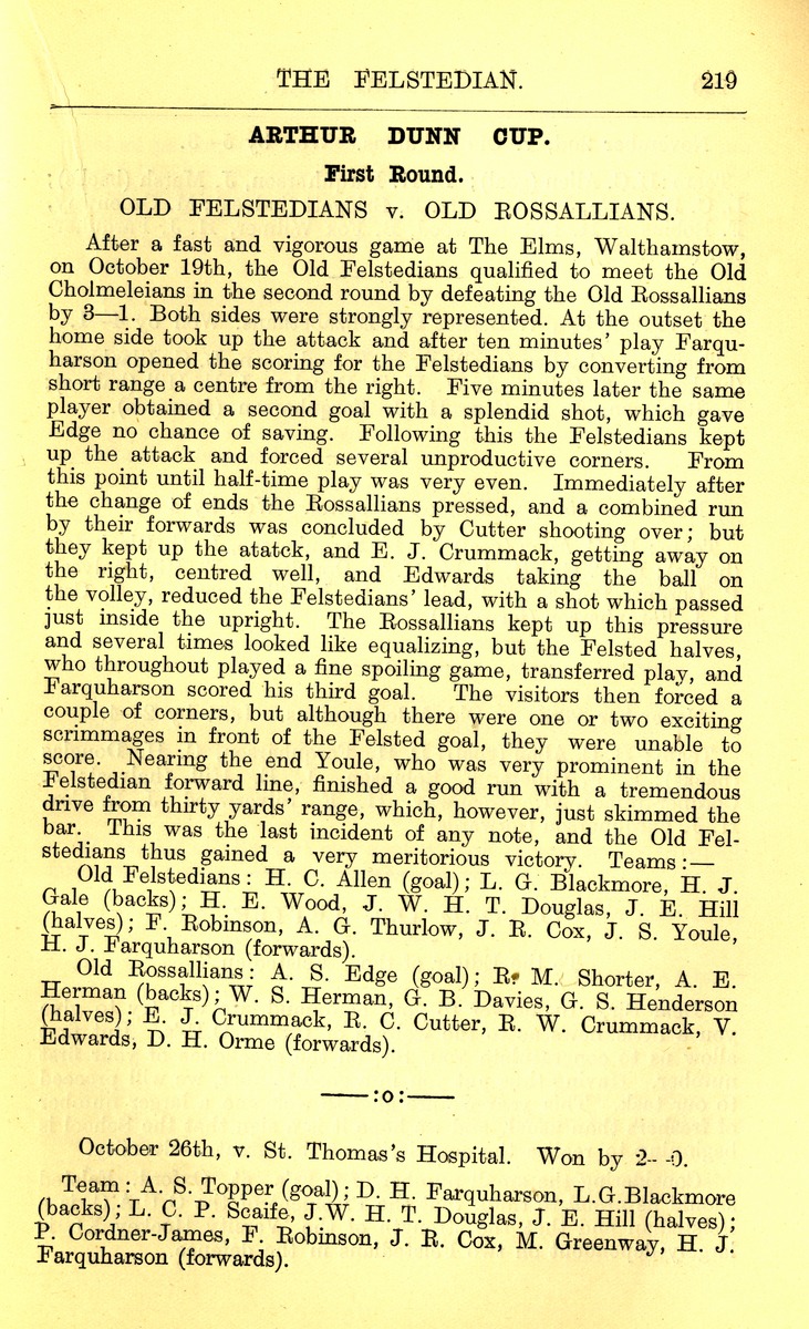 24th January 1903 – The Old Felstedians help form and participate in the first ever round of the Arthur Dunn Cup.